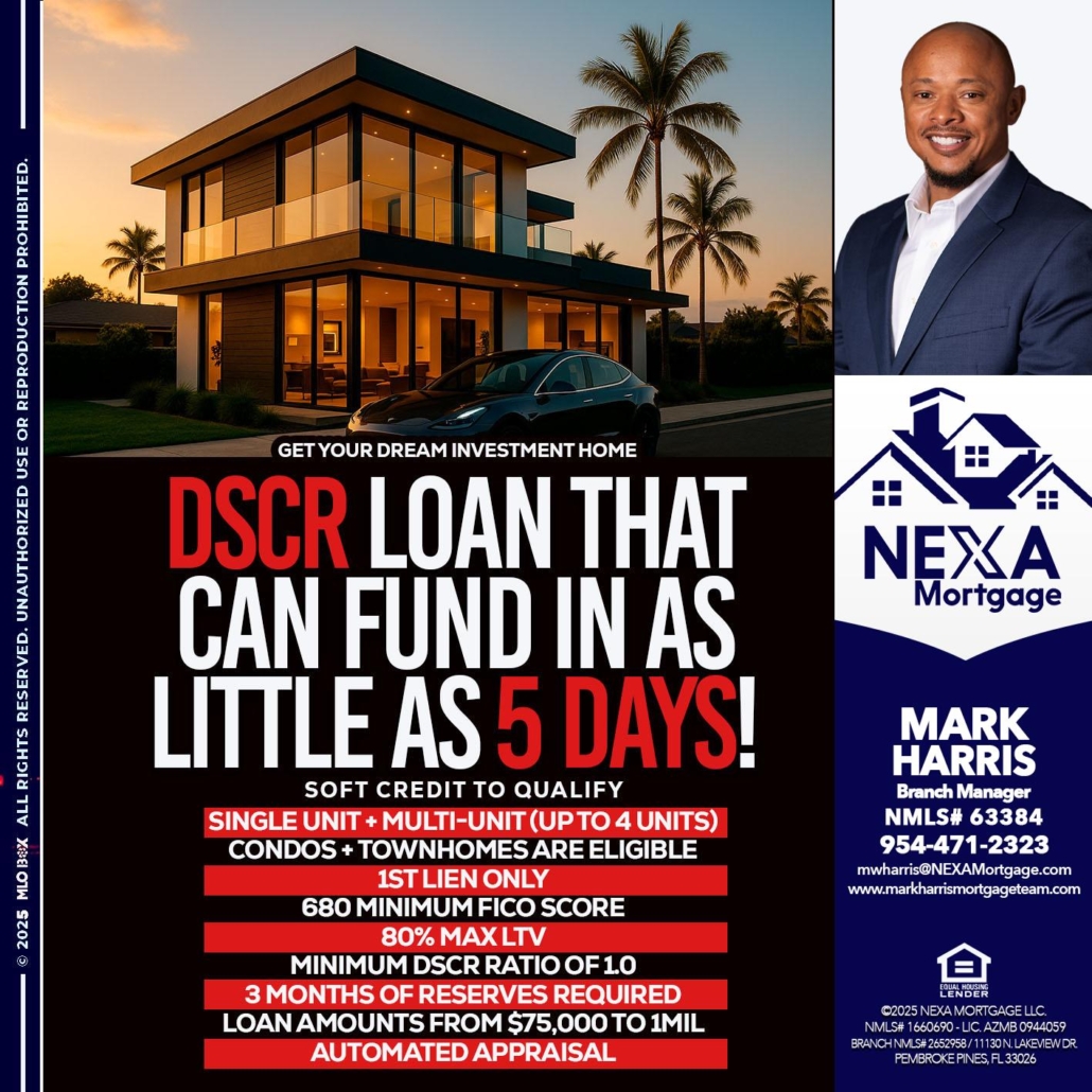 Hi, my name is Mark Harris. I’m a Loan Officer with NEXA Mortgage LLC., offering personalized mortgage solutions, fast customized quotes, great rates and service with integrity.