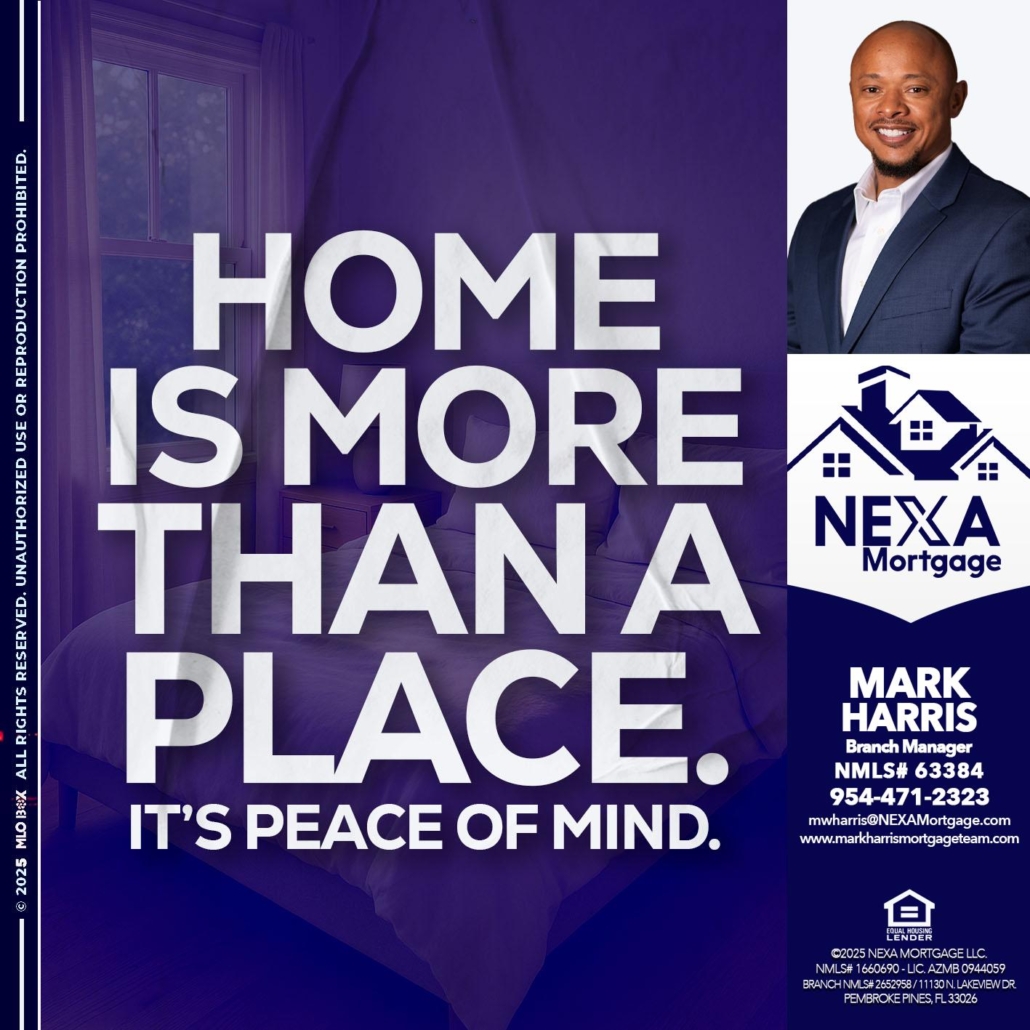 HOME IS MORE - Mark Harris -Loan OfficerHi, my name is Mark Harris. I’m a Loan Officer with NEXA Mortgage LLC., offering personalized mortgage solutions, fast customized quotes, great rates and service with integrity.