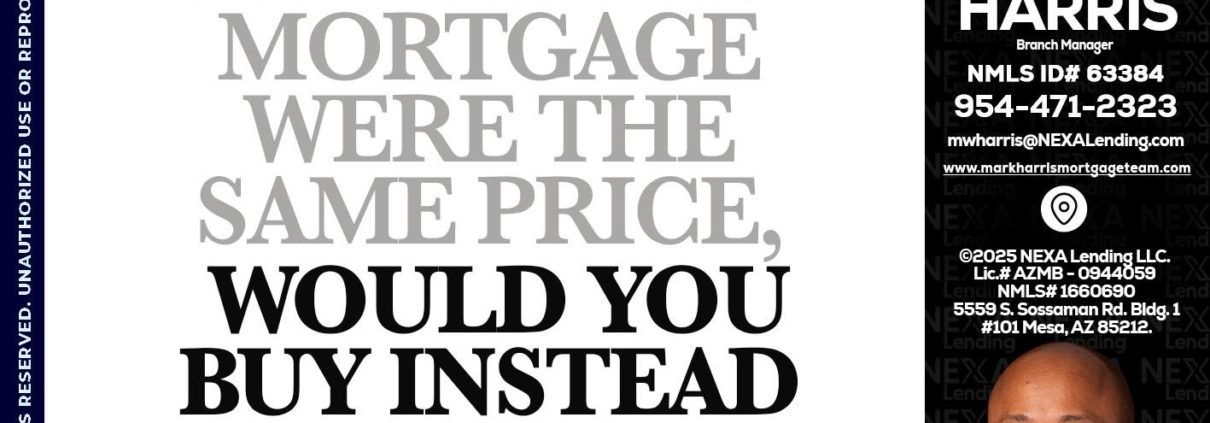 Hi, my name is Mark Harris. I’m a Loan Officer with NEXA Mortgage LLC., offering personalized mortgage solutions, fast customized quotes, great rates and service with integrity.