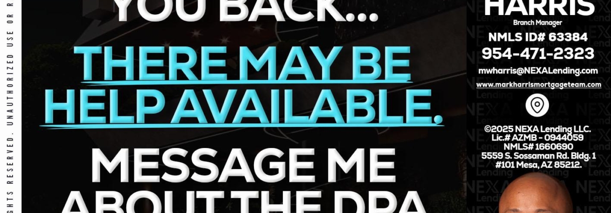 Hi, my name is Mark Harris. I’m a Loan Officer with NEXA Lending LLC., offering personalized mortgage solutions, fast customized quotes, great rates and service with integrity.