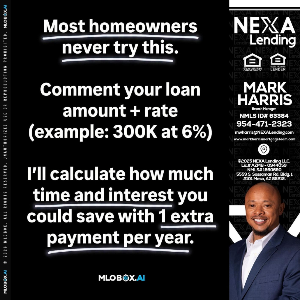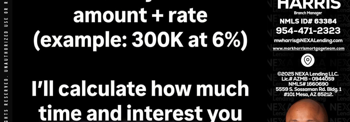 Hi, my name is Mark Harris. I’m a Loan Officer with NEXA Lending LLC., offering personalized mortgage solutions, fast customized quotes, great rates and service with integrity.