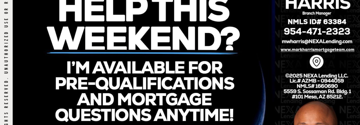 REAL ESTATE AGENTS - Mark Harris -Loan OfficerHi, my name is Mark Harris. I’m a Loan Officer with NEXA Lending LLC., offering personalized mortgage solutions, fast customized quotes, great rates and service with integrity.
